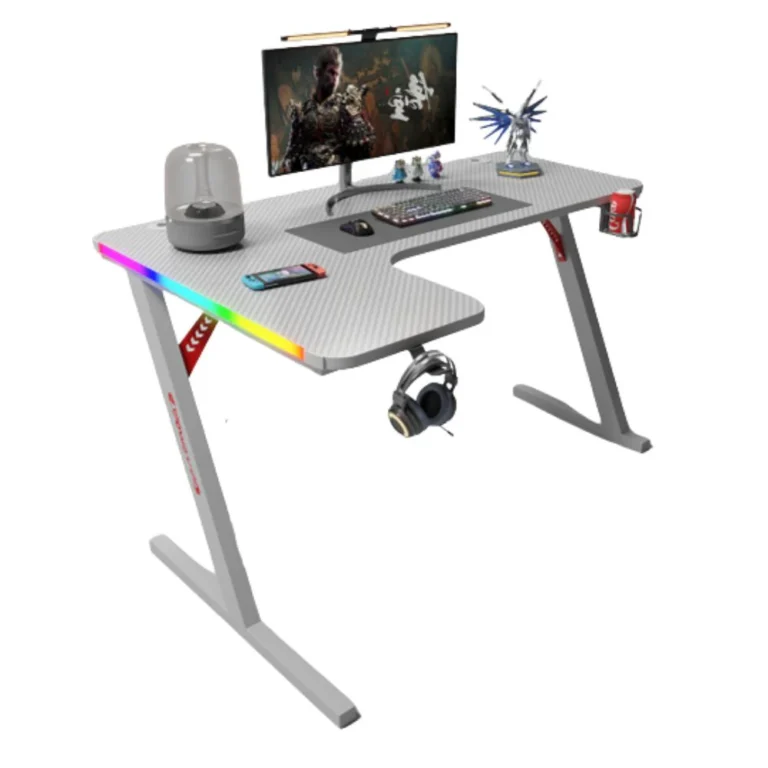 جاماكس P201-LW طاولة ألعاب كاربون فايبر RGB مقاس 140x100x74 سم مع ماوس باد (شكل L – يسار) – أبيض (غير شامل التركيب)