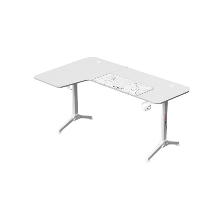 طاولة ألعاب جاماكس هاي واي إل بتصميم حرف إل بمقاس 160 × 100 × 75 سم مع ماوس باد على الجهة اليسرى – أبيض (التركيب غير مشمول)