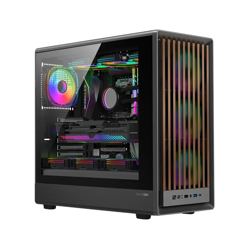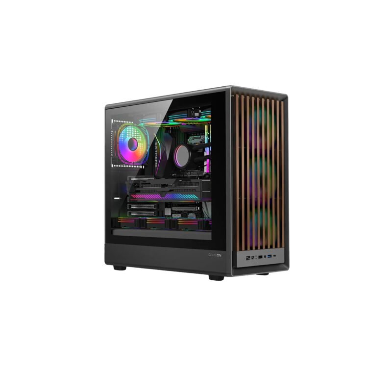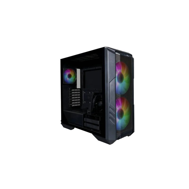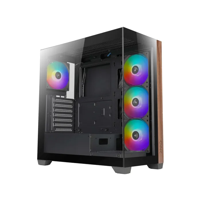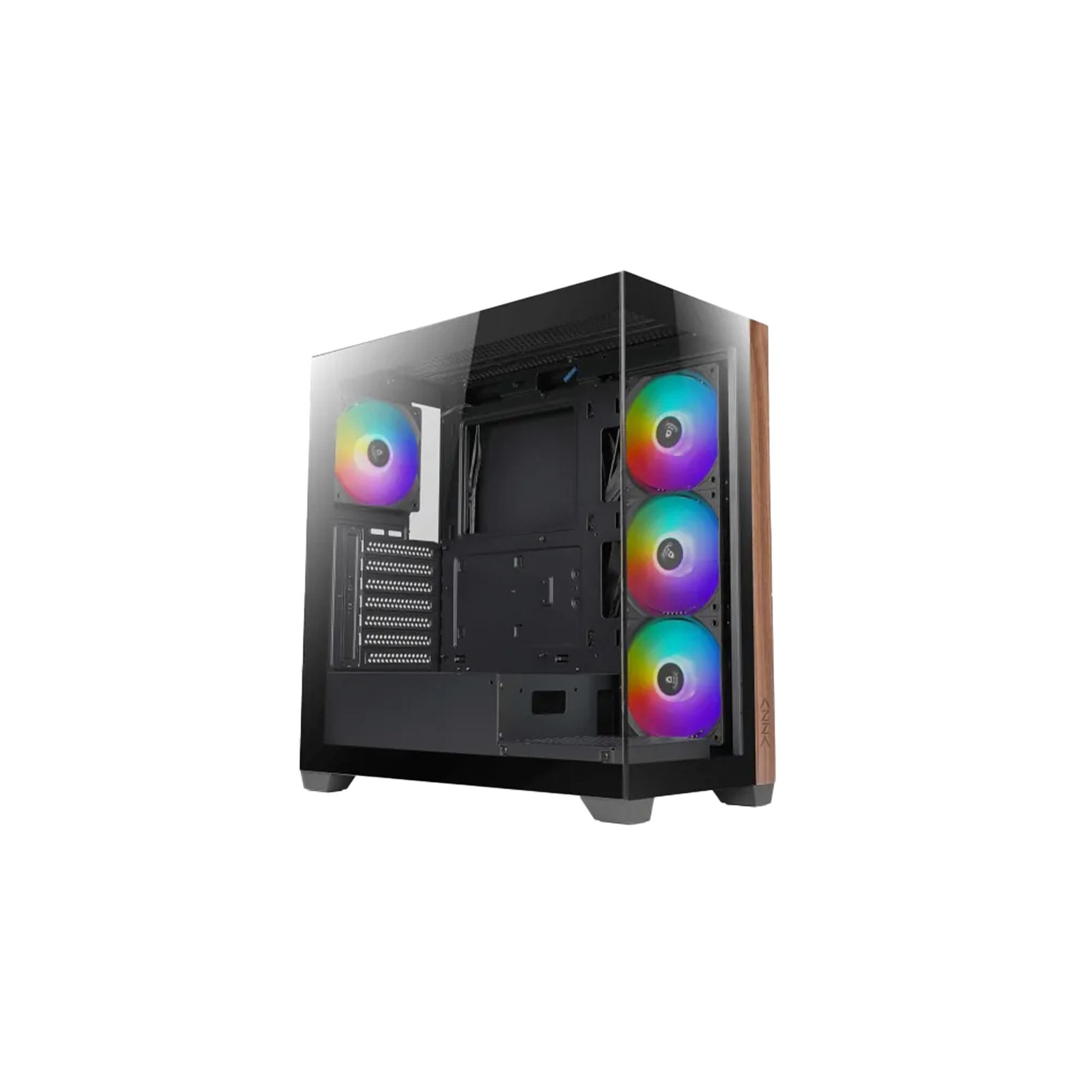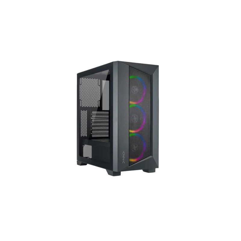 آزا كيس جهاز الكمبيوتر نبتون متوسط الحجم، لوحتين أماميتين وجانب أيسر من الزجاج المقوى، مع ٤ مراوح آر جي بي – أسود
