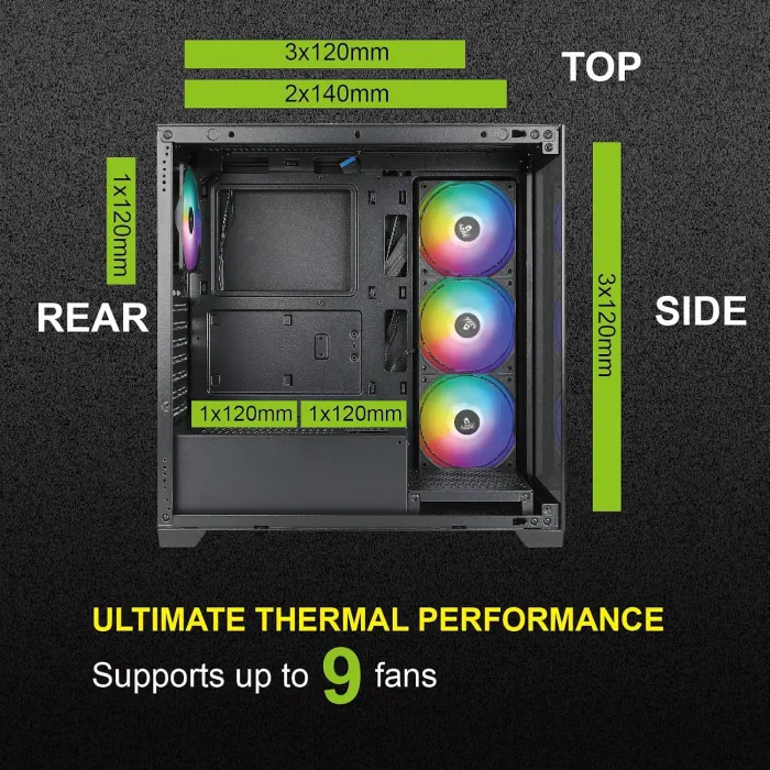 Additional Fan Support 3x120mm or 2x140mm fan ports on the top