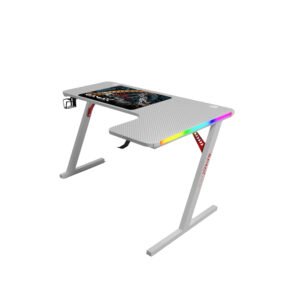 جاماكس P201-RB طاولة ألعاب كاربون فايبر RGB مقاس 140x100x74 سم مع ماوس باد (شكل L – يمين) – ابيض (غير شامل التركيب)