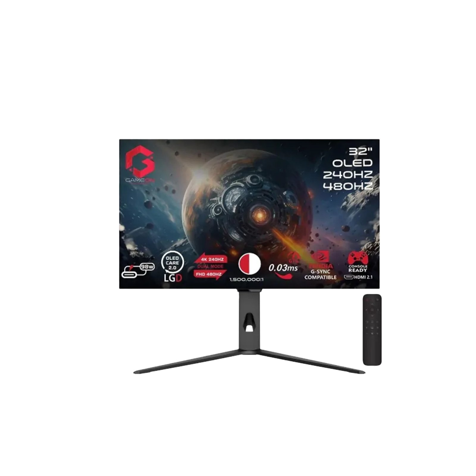 جيم أون شاشة الألعاب جي أو ٣٢ أوليد سلسلة إكس سيجنتشر، مقاس ٣٢ بوصة، بدقة ٤كي، بشاشة أوليد آي بي إس مزدوجة، تدعم ٢٤٠ هرتز بدقة ٤كي و٤٨٠ هرتز بدقة فل إتش دي، بزمن استجابة ٠.٣ مللي ثانية، مزودة بمنافذ إتش دي إم أي ٢.١، متوافقة مع بلايستيشن ٥ – أسود