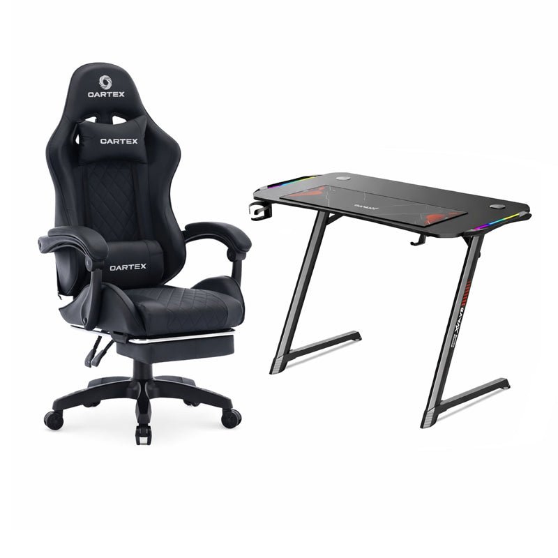عرض مجموعة أثاث الألعاب: طاولة ألعاب أورتكس أو إكس-١١٦٠ من ألياف الكربون، مع كرسي ألعاب أورتكس موديل إل دي٠٣٤ – أسود