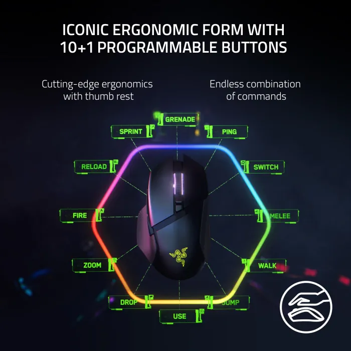 ICONIC ERGONOMIC FORM WITH 10+1 PROGRAMMABLE BUTTONSFavored by millions worldwide, the mouse’s signature shape perfectly supports cutting-edge ergonomics and endless customizability options 13-ZONE CHROMA LIGHTING WITH FULL UNDERGLOWCustomize each zone from over 16.8 million colors and countless lighting effects, and experience greater immersion as they react dynamically with over 150 Chroma-integrated games RAZER FOCUS PRO 30K OPTICAL SENSORRazer’s brand-new sensor provides flawless tracking performance on a wider variety of surfaces, including glass—supported by intelligent functions for enhanced aim and control RAZER OPTICAL MOUSE SWITCHES GEN-3From an improved 90-million click lifecycle with zero double-clicking issues, to a blistering 0.2ms actuation with no debounce delay, enjoy reliability and speed that outshines all others RAZER HYPERSCROLL TILT WHEELSpeed through content with a scroll wheel that spins freely or switch to the tactile mode for more precision and feedback |