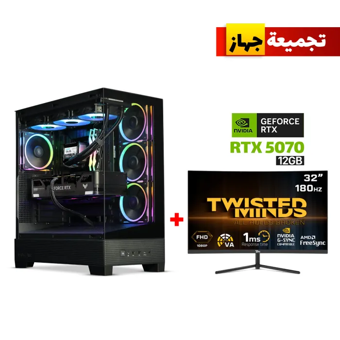 Gaming PC i7-14700F, GigaByte Z790 UD AC DDR5 WiFi MB, 32GB DDR5 RAM, 2TB NVMe SSD, ZOTAC RTX 5070 12GB VGA, AZZA L240 Liquid Cooler, 850 WATT GOLD PSU, Asus A31 Plus Mid Tower Case Black, Windows 11 Pro License, Twisted Minds 32″ VA Curved Gaming Mo